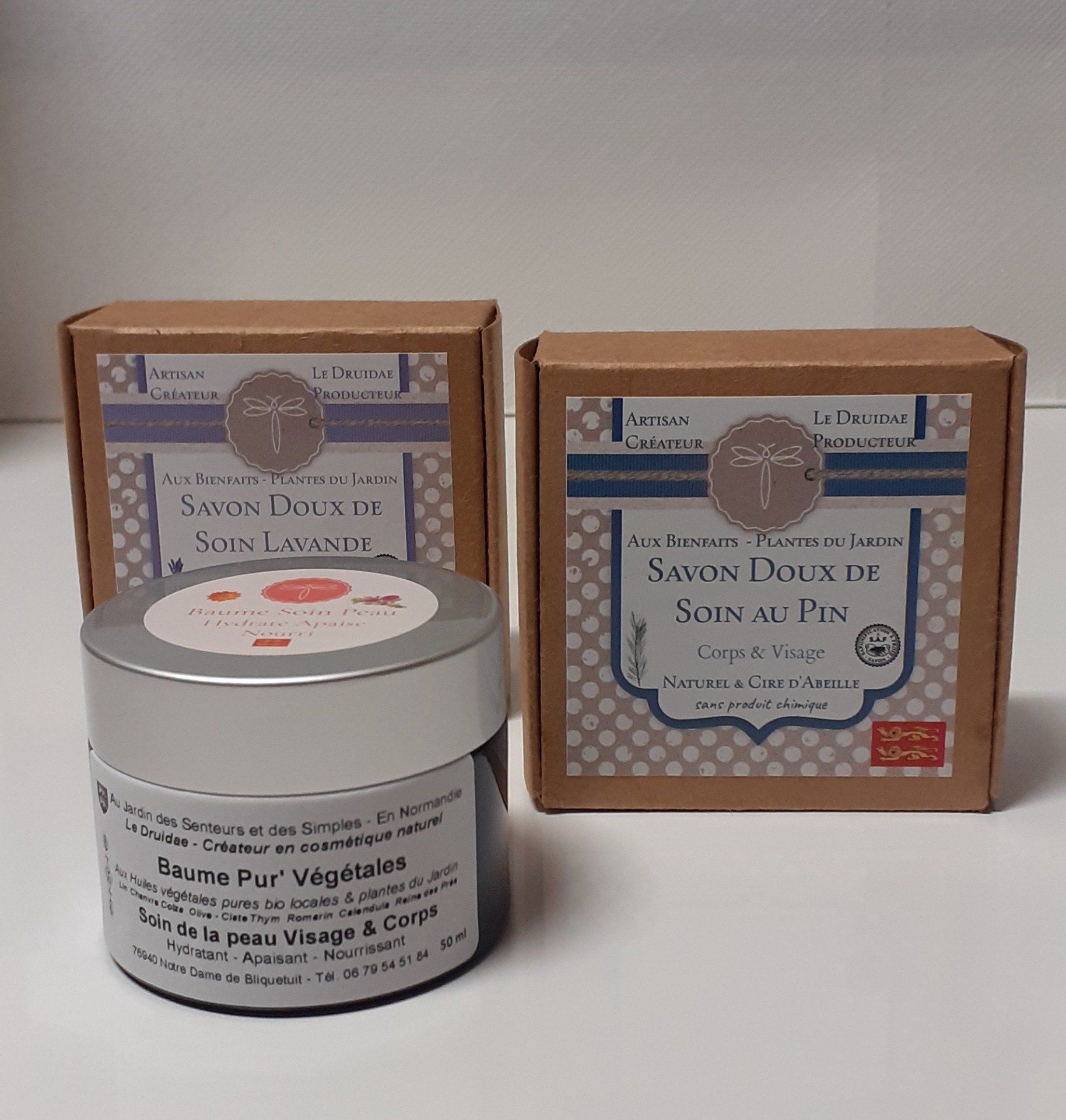 Baume Naturel Pur’ Végétales (50 ml) et un Savon Boisé au Pin (100g) et un savon Lavande (100g) : Visage et Corps